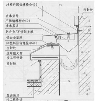 ![]() ![]() 屋面变形缝转角R-WM是屋面变形缝RM的转角型,特点及功能与屋面变形缝RM是一样的,面板采用的是适合屋面转角的转角型盖板。可确保变形缝装置变位时仍能保持中心及原有位置,能确保50%位移量,同时中心盖板自定中心,接合平整,美观大方。 中心盖板可选用铝合金、不锈钢板或黄铜,通常使用铝合金盖板的居多。 适用缝宽50-500mm。![]()