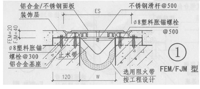 工程设计人员根据设计中变形缝所在部位确定选用类型;根据设计缝宽确定选用规格;确定伸缩量;最后根据装饰效果、连接方式确定选用型号。